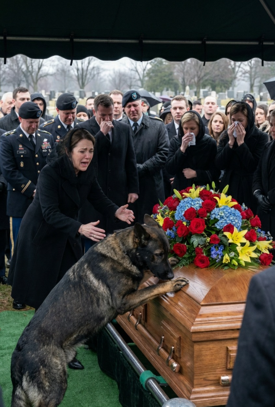 During the fallen officer’s funeral, his loyal dog suddenly jumped onto the coffin, howling and clawing in panic, refusing to …