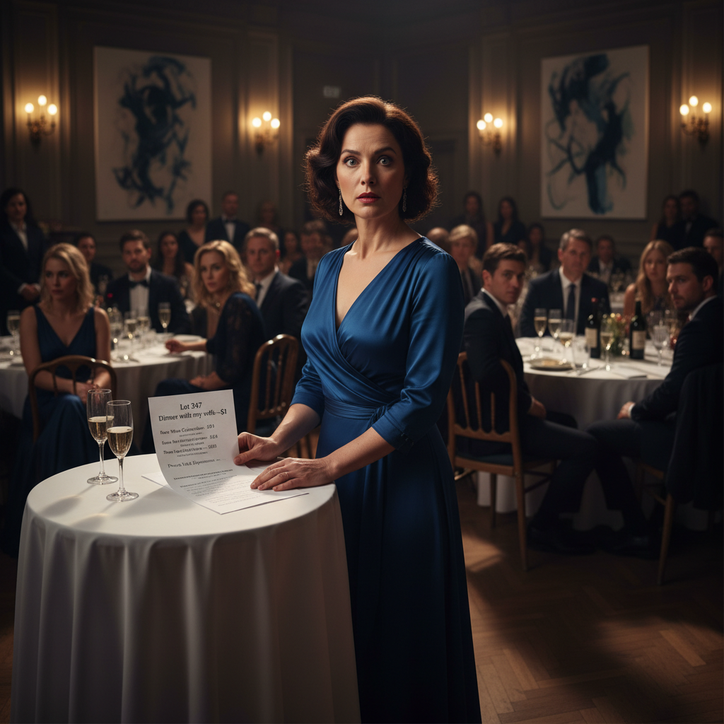 The room was buzzing with laughter and clinking glasses when my husband took the stage at the charity auction. I was still adjusting my dress, a deep blue that I thought matched the evening’s elegance, as he jokingly announced, « Dinner with my wife—starting at one dollar! » A few chuckles rippled through the crowd, but my stomach dropped. I glanced at our friends; their smiles were tight, eyes darting away.