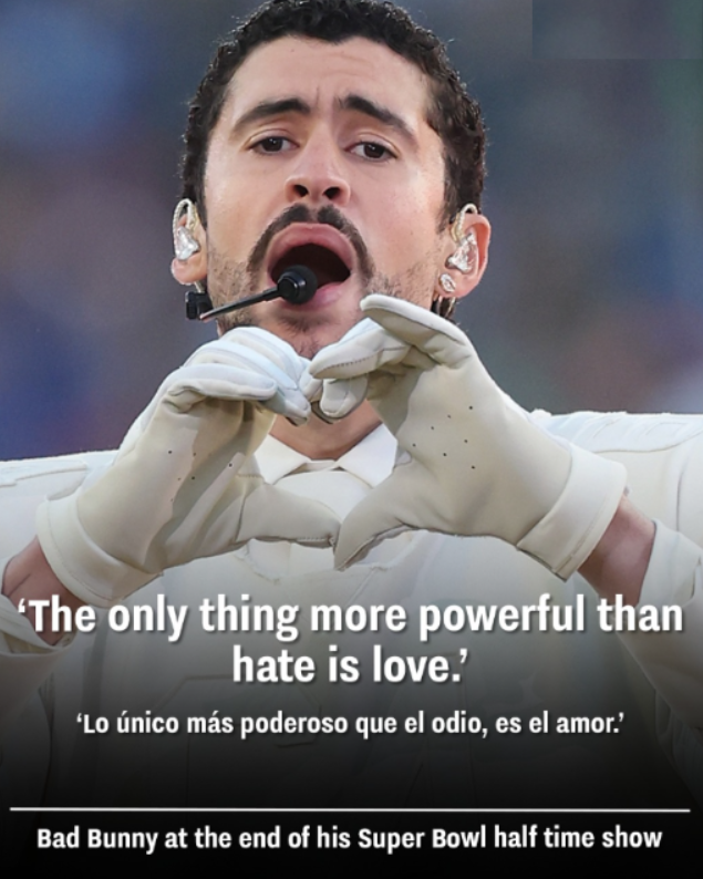 As Bad Bunny’s Super Bowl halftime performance came to a close, the Grammy award-winning singer shared a subtle message to fans with a message emblazoned on the football he was holding.
