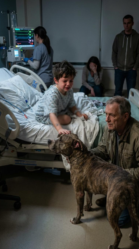 A 110-pound pit bull, badly scarred and suffering from terminal cancer, suddenly pulled his owner toward a child’s hospital room filled with cries. What he did next was so powerful and emotional that it brought everyone nearby to tears.