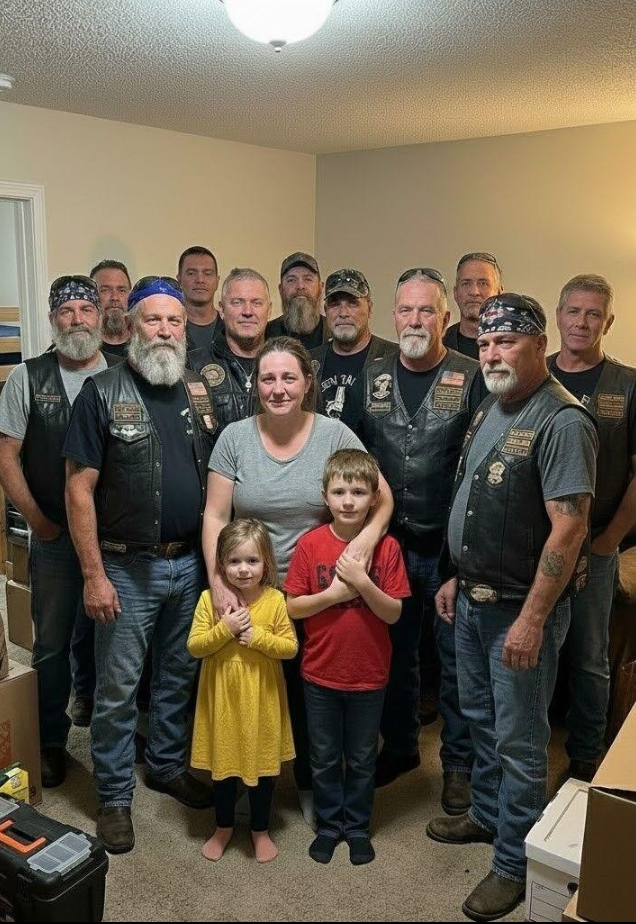 I was standing in my doorway at 7 AM on a Tuesday, holding my four-year-old daughter while my seven-year-old son hid behind my legs, as thirty massive men in leather vests walked up our apartment stairs.