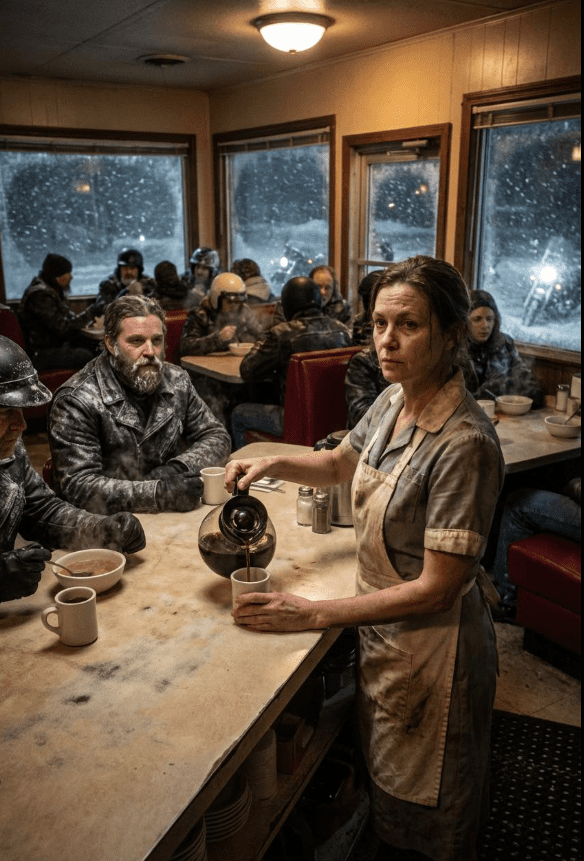 The wind battered the windows of North Ridge Diner like it had a personal grudge, shrieking through the cracks and …