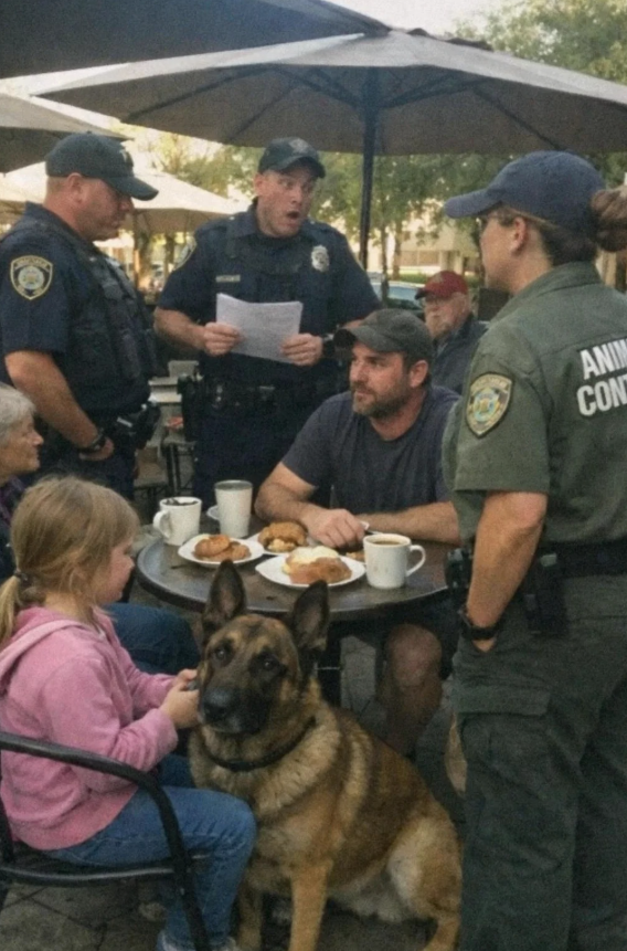 “Sir, Remove the Dog or We’ll Intervene.” The Police Surrounded Our Café Table While My Dog Sat Beside a Little Girl… Until They Discovered He Was a Retired Military K9 Who Once Saved Our Entire Unit