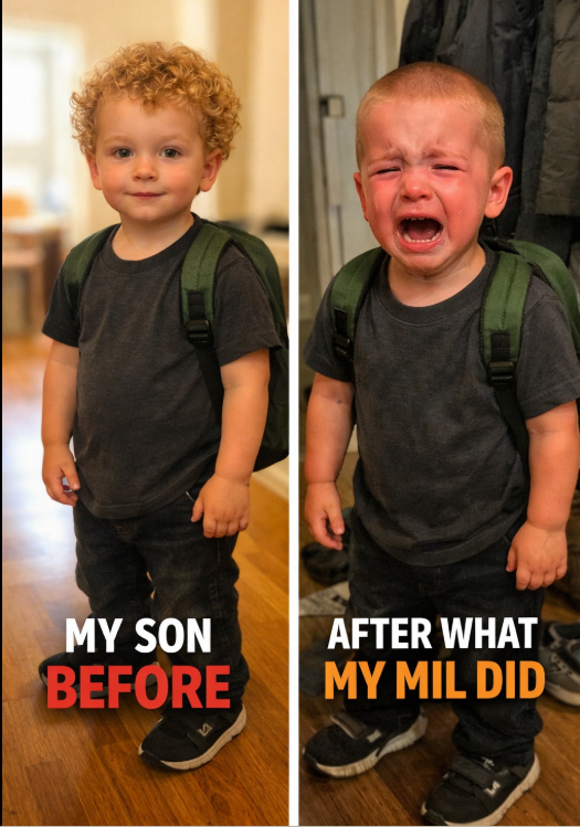 He ran toward me like he always did after spending the afternoon at his grandmother’s house—but something was off. His usual bounce was gone. His hand kept going up to his head, touching it in small, uncertain movements, like he didn’t quite recognize it anymore.