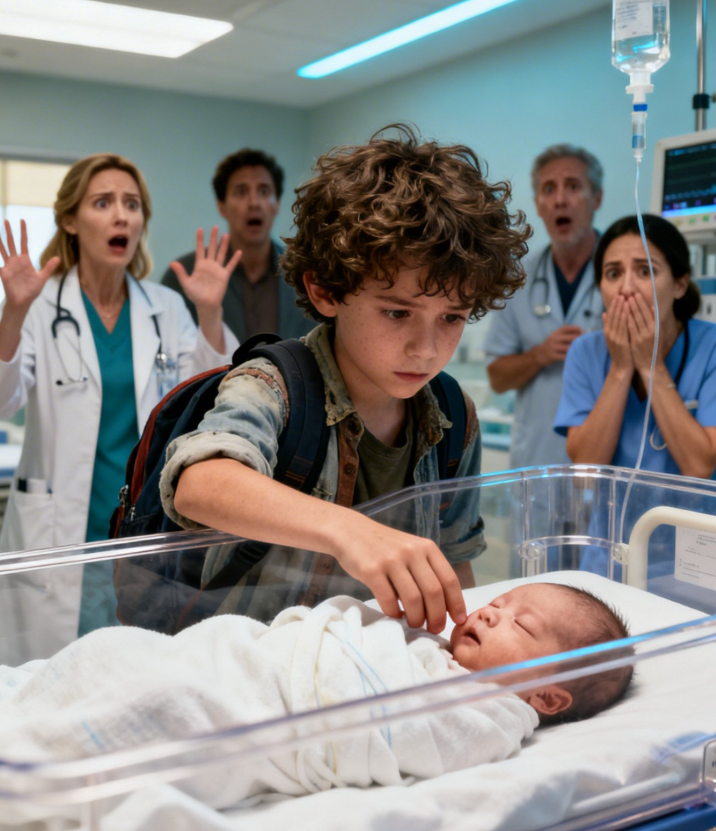 Leo stepped closer before anyone could stop him, his small fingers tightening around the strap of his worn bag as his eyes fixed on that subtle swelling.
