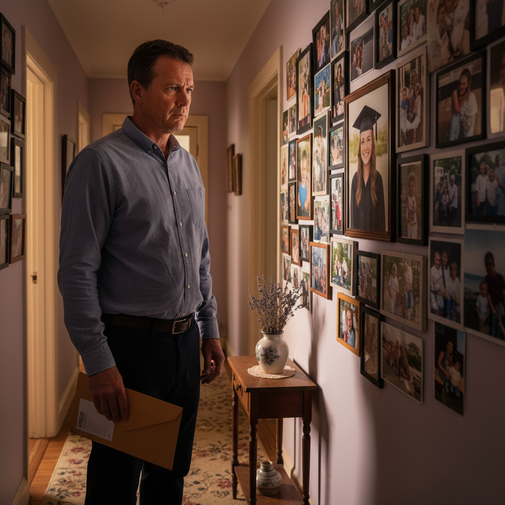 My eyes wandered to the wall on the left, and my heart seized up. There, displayed meticulously, were 23 photos—pictures of my life, my family. Each moment, captured, framed, and hung with care. I recognized them all: my daughter’s graduation, our last Thanksgiving, and even a candid shot of my wife and me at a charity gala.