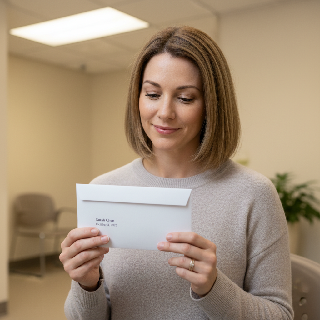 The clinic’s waiting room was as nondescript as ever, with its beige walls and generic landscape paintings. I sat there, the edge of a white envelope grazing my fingers. My name was printed neatly on the front, accompanied by the date: October 3, 2023. It was just a routine checkup, something I’d done countless times without a second thought. The air was filled with the faint scent of antiseptic, and the murmurs of other patients blended into the background.