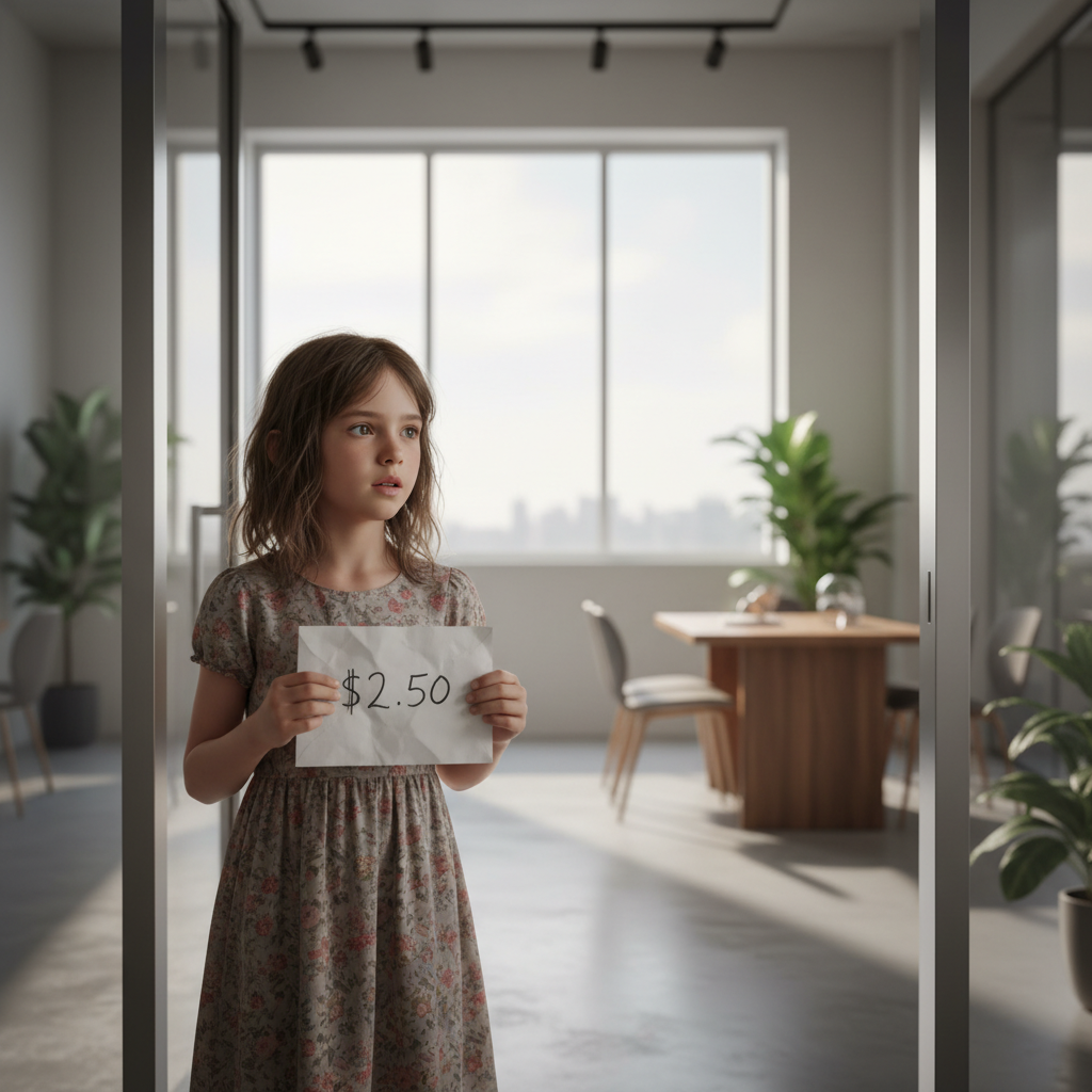 It started like any other Tuesday at the office. The hum of the fluorescent lights overhead, the quiet chatter of my colleagues a comforting background noise. I was in the middle of reviewing the quarterly financial reports at my desk when a soft tap on the glass door caught my attention. There she stood, a young girl, no older than ten, with wide, pleading eyes. Her clothes were worn, her hair tied in a messy ponytail. In her hand was a crumpled envelope, the number $2.50 scribbled hastily across it.