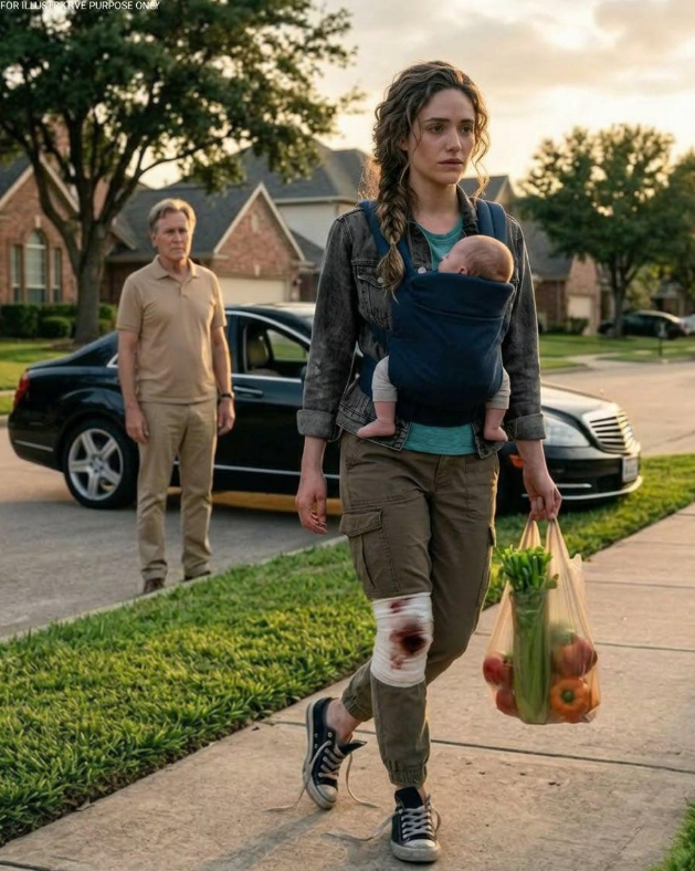 My dad saw me limping down the street, holding my baby and grocery bags, and asked where my car was. When I quietly explained that my partner’s mother had taken it and expected gratitude, his expression changed instantly.